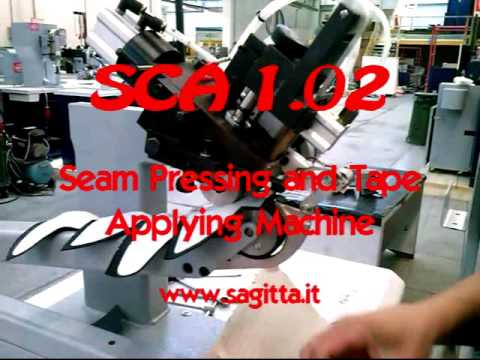 Máquina para alisar as costuras e aplicar a fita de reforço.